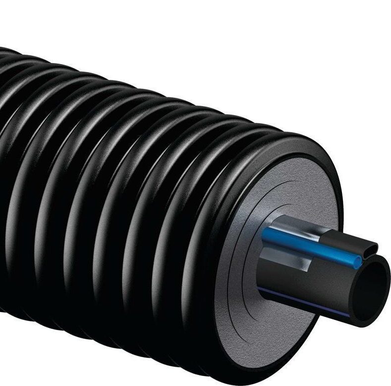 (водопоглощение <1%). Защитный гофрированный кожух из полиэтилены высокой плотности HDPE. Область применения: Предназначена для подземной бесканальной прокладки в системах холодоснабжения, холодного водоснабжения, напорной канализации, в местах, где существует риск замерзания. Параметры несущей трубы: рабочая температура 20°С, максимальное рабочее давление 16 бар. Срок службы не менее 50 лет при температурных режимах, указанных в ГОСТ 32415-2013, таблица 5, класс ХВ.